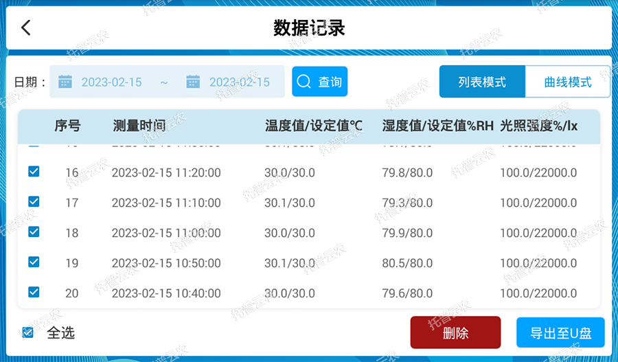 數(shù)據(jù)實時記錄:可查看當(dāng)前實驗的溫濕度,以及設(shè)定值也可查詢歷史記錄。