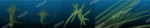 使用立體視覺、多視圖(MVS)重構(gòu)技術(shù)等,自動重構(gòu)生成植物高精度三維模型,計算植物株型結(jié)構(gòu)、冠層結(jié)構(gòu)、顏色分布、體積等表型性狀并分析植物生長狀況、長勢動態(tài)變化等;主要應(yīng)用于植物形態(tài)分析(篩選突變株、逆境處理下篩選抗逆種質(zhì))、植物長勢分析(分析突變體或特殊處理條件下植物生長狀態(tài)變化)。
